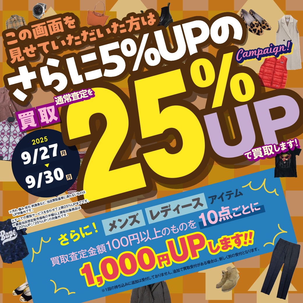 ※当店想定販売価格の半額以上買取対象商品は「25%UP」の対象外です。